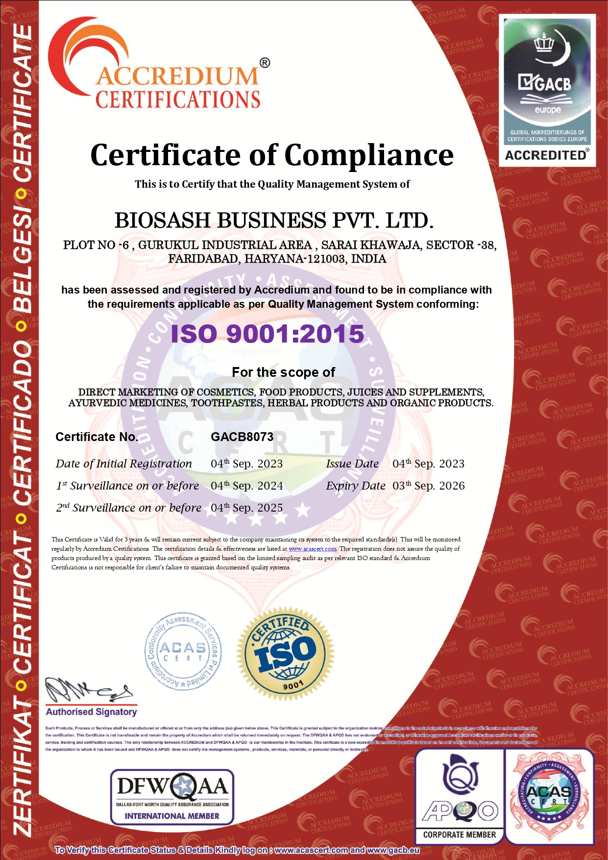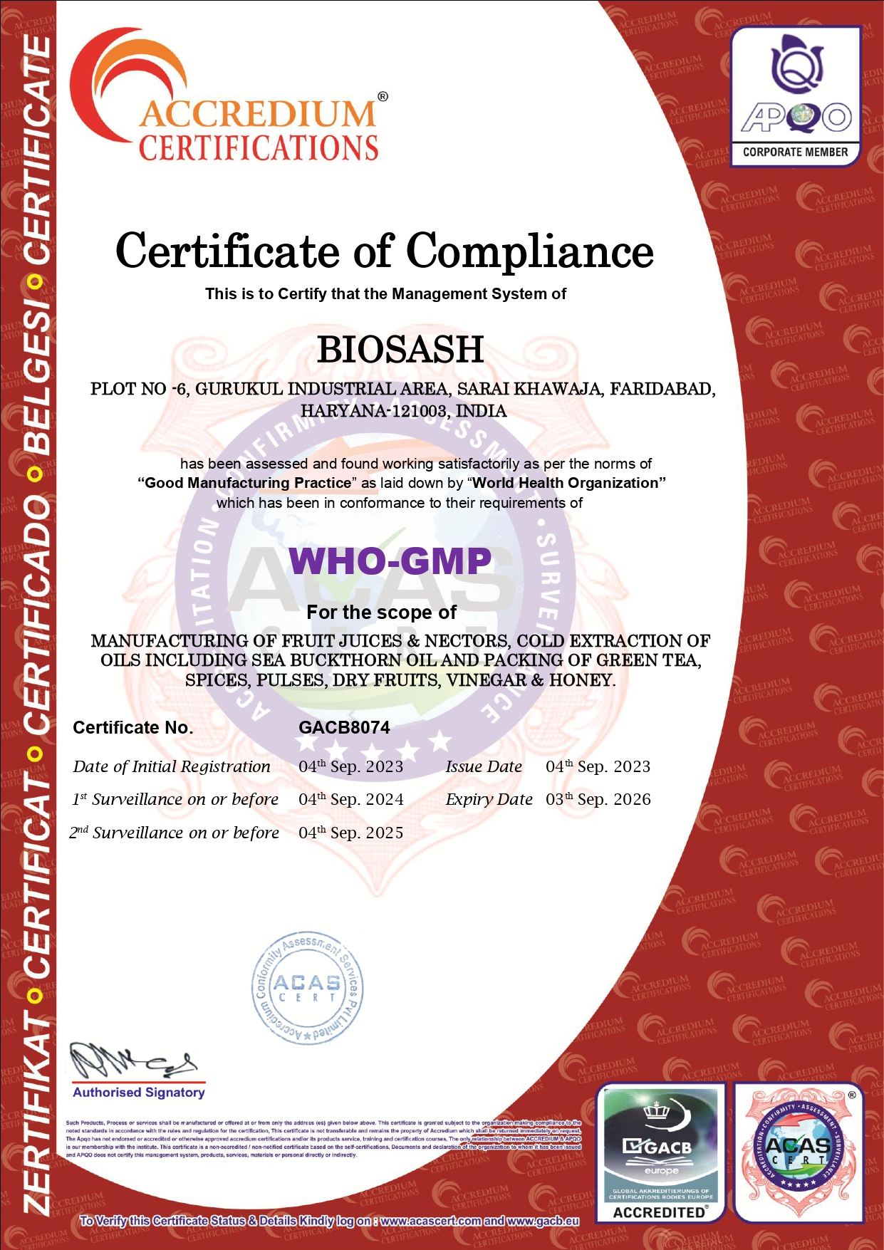 Certificate of WHO:GMP